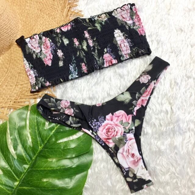 シャーリングに大人な花柄がセクシーなブラジリアンビキニです。