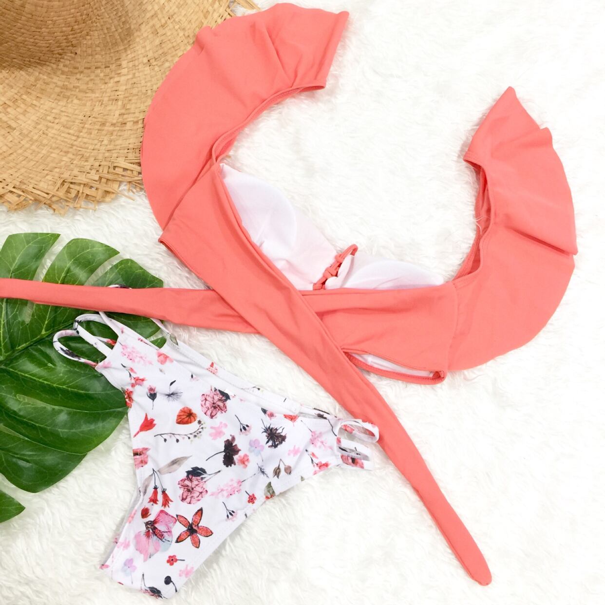 パンツはカラフルな小花柄が散りばめられた大人可愛いビキニです。